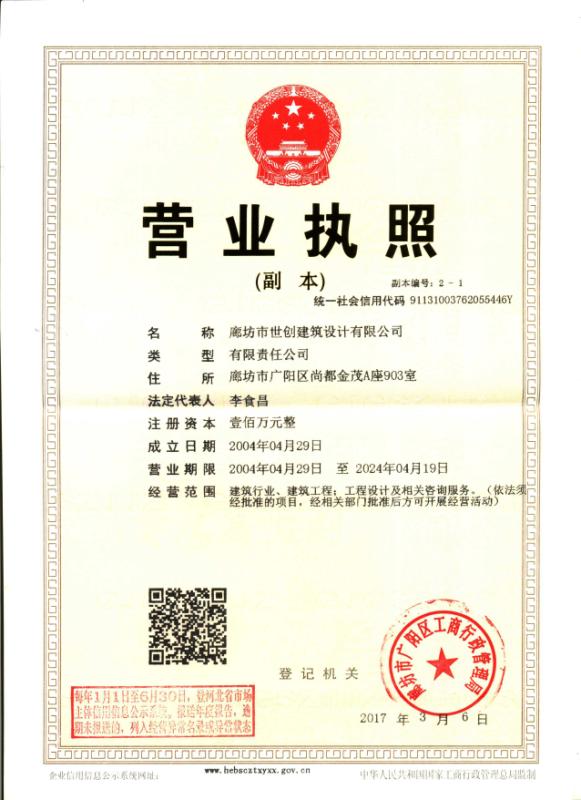 廊坊市世創(chuàng)建筑設(shè)計有限公司,原為廊坊市規(guī)劃設(shè)計院建筑工程設(shè)計所。成立于1997年,多年來本公司在社會各界人士的關(guān)心、支持下,不斷發(fā)展壯大。自2006年3月1日起具有國家建設(shè)部核準(zhǔn)的建筑工程乙級設(shè)計證書,證書編號為:A213006026。企業(yè)法人營業(yè)執(zhí)照,注冊號:131003000011148 我公司自創(chuàng)建以來完成各類工業(yè)與民用建筑設(shè)計、咨詢項目共有三百五十多項,建筑面積近三百萬平方米,工程所在地涵蓋廊坊、天津、北京等地區(qū)。并有...